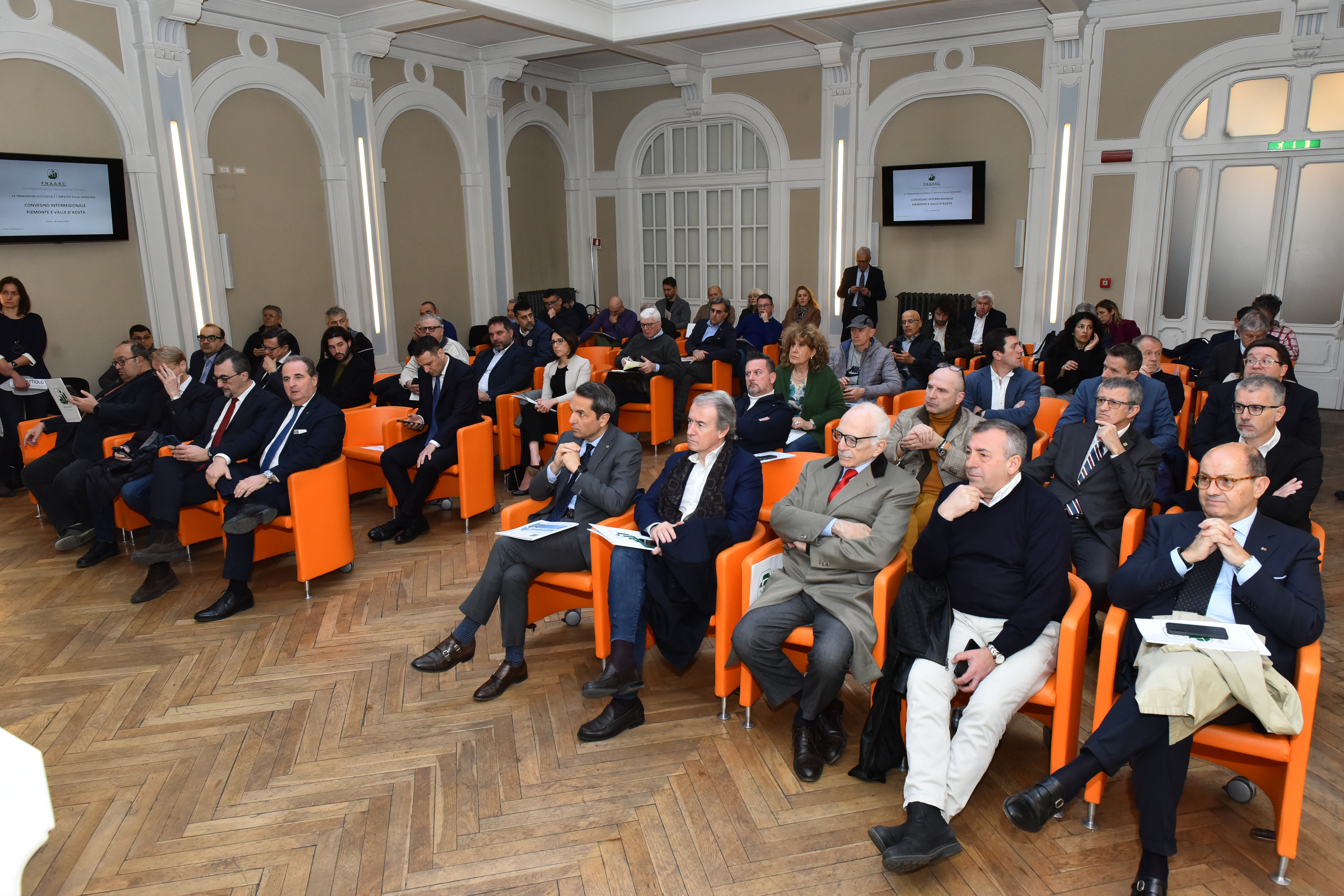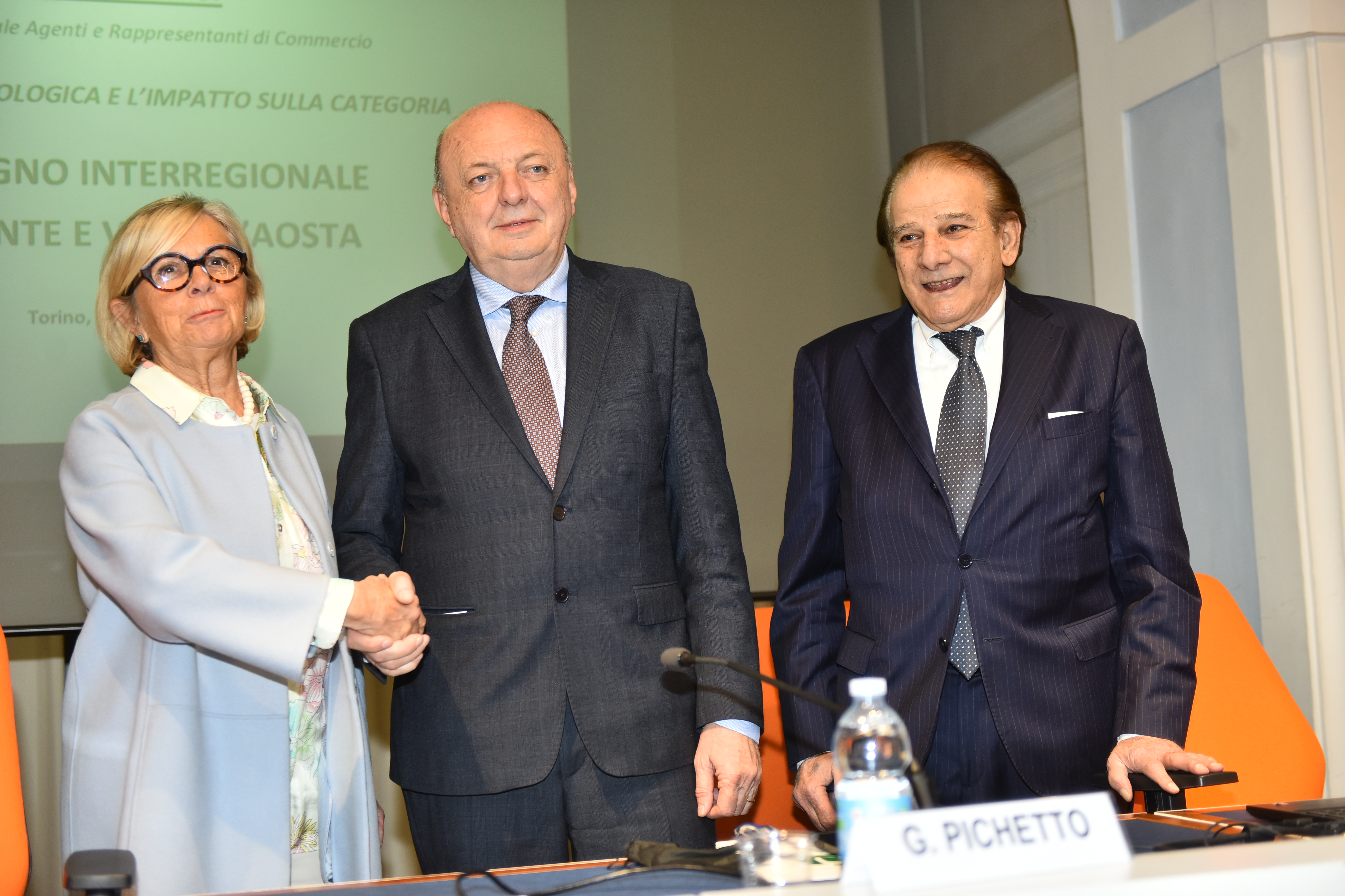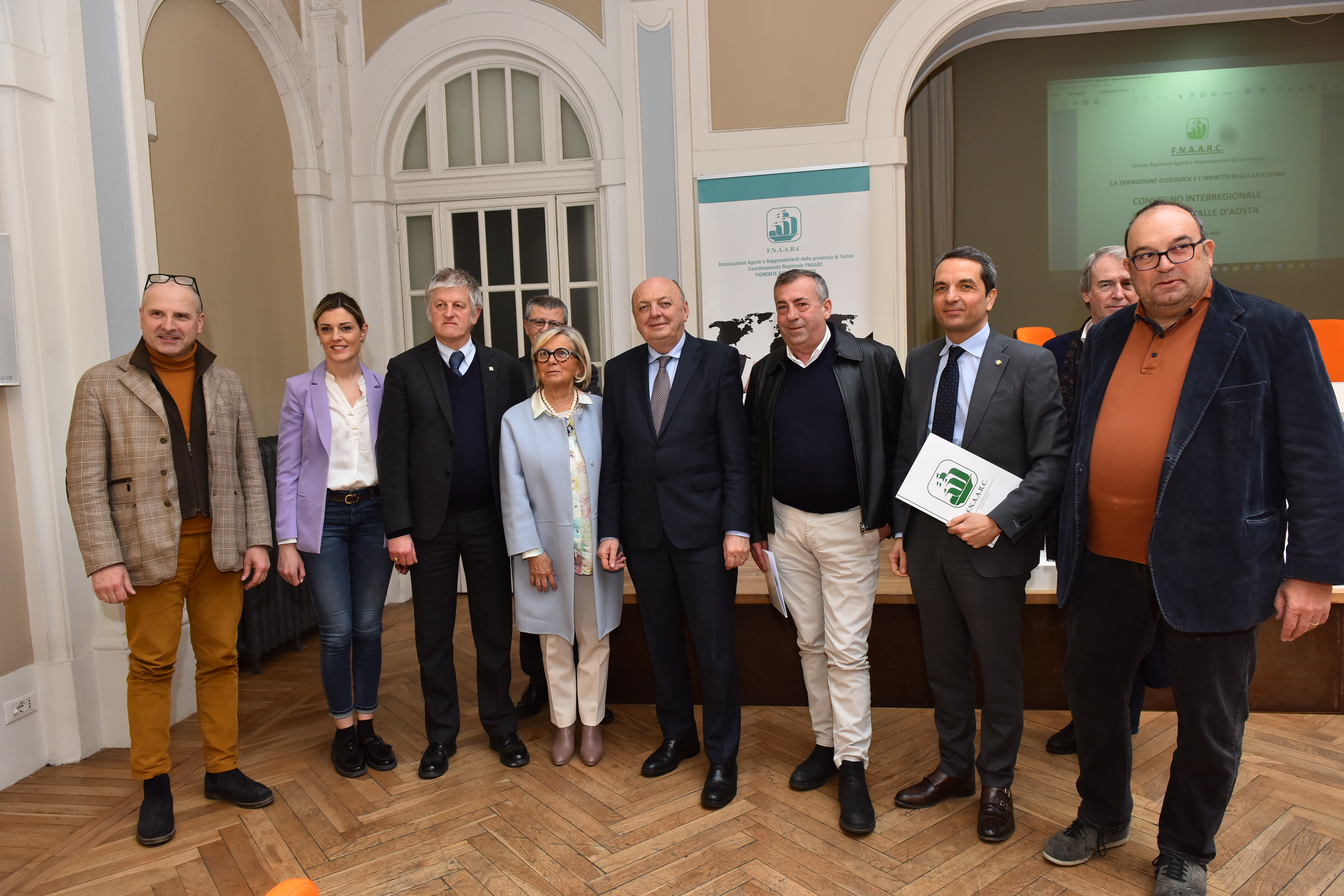 18 marzo 2023 - Parte da Torino la mobilitazione degli agenti di commercio preoccupati per le notizie di interventi a livello locale, nazionale ed europeo sulla transizione ecologica. In occasione dell’incontro di oggi ‘La transizione ecologica e l’impatto sugli agenti di commercio’ organizzato dall'Unione Regionale F.N.A.A.R.C. Piemonte e Valle D'Aosta, aderente ad Ascom, per condividere criticità e istanze con il ministro dell’Ambiente e della Sicurezza Energetica Gilberto Pichetto Fratin. Oltre al Ministro sono intervenuti il presidente della Regione Alberto Cirio, il segretario generale della Camera di commercio di Torino Guido Bolatto, la presidente di Ascom Confcommercio Torino Maria Luisa Coppa, il presidente di F.N.A.A.R.C. Torino Gino Mattiolo e il presidente nazionale F.N.A.A.R.C. Alberto Petranzan. Nutrita la presenza di parlamentari, assessori regionali e comunali e di numerose autorità.